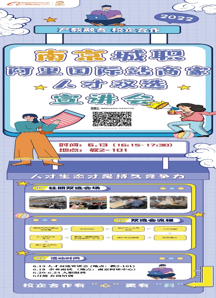 为了贯彻落实教育部等八部门印发的《职业学校学生实习管理规定》(教职成〔2021〕4号)及学校印发的《mk世界杯_mk(中国)学生顶岗实习管理办法(修订)》(宁城职院〔2021〕55号)等文件精神,mk世界杯_mk(中国)于2022年 6 月13 日联合阿里巴巴国际站南京大渠道部,共同举办了题为“校企合作 有心更有料”的学生实习宣讲。阿里巴巴国际站南京大渠道部区域主管许小然、宁扬区域业务主管赵文轩受邀主讲,mk世界杯_mk(中国)刘红副院长、丁亮副院长以及跨境电商专业负责人滕静涛参加本次活动,2020级、2021级跨境电子商务、国际商务、商务管理、物流管理等专业学生聆听了企业宣讲。