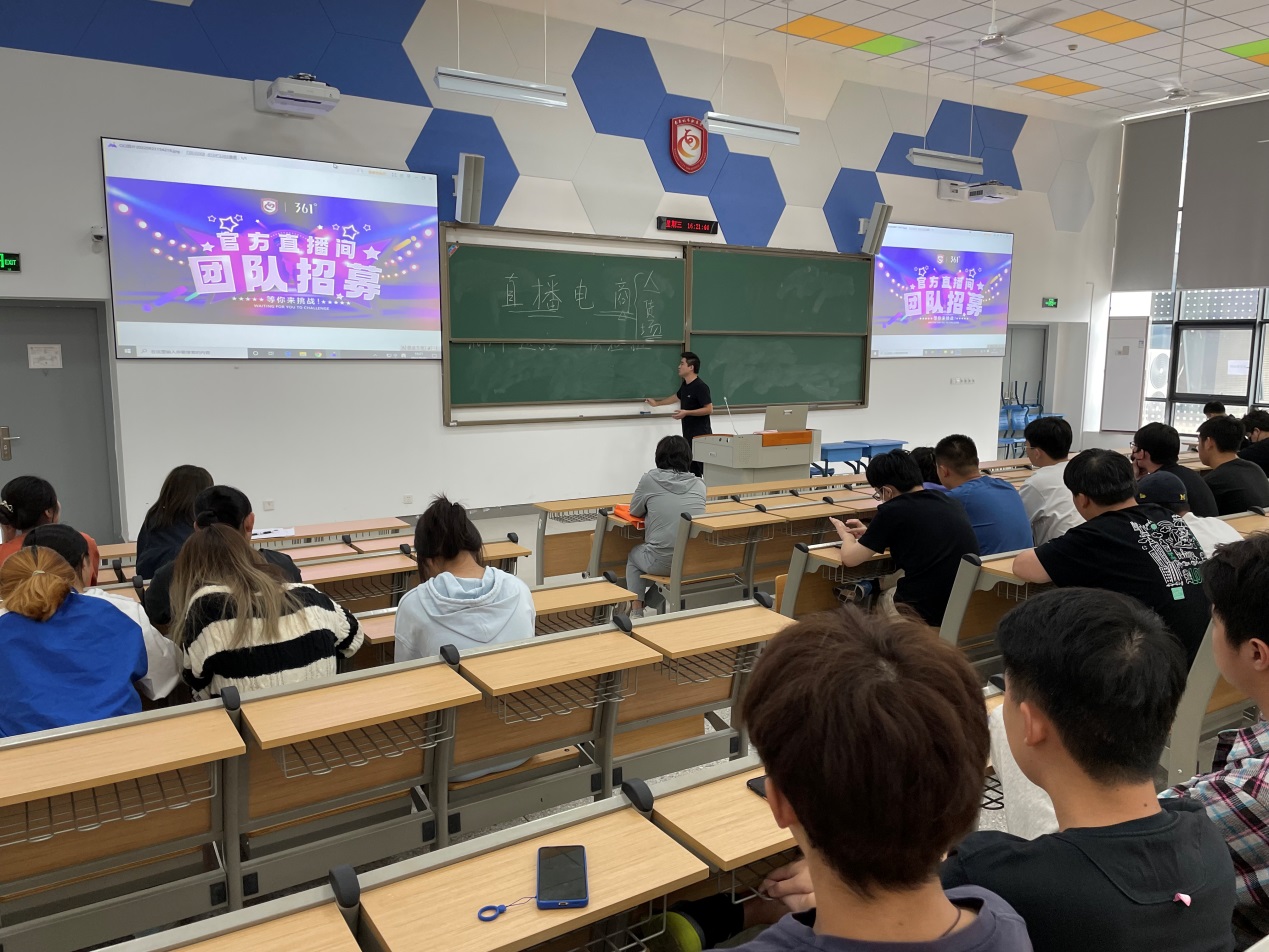 为进一步拓展电商产业校内生产型实习基地建设,拓展实习就业工作,mk世界杯_mk(中国)引入“361°有限公司,共建位于我校科创楼智慧商贸产学研中心的校企合作生产性实习项目,并于2022年9月21日下午16:00在教2-101阶梯教室举办了校企合作共建 “361°官方直播团队”宣讲会。