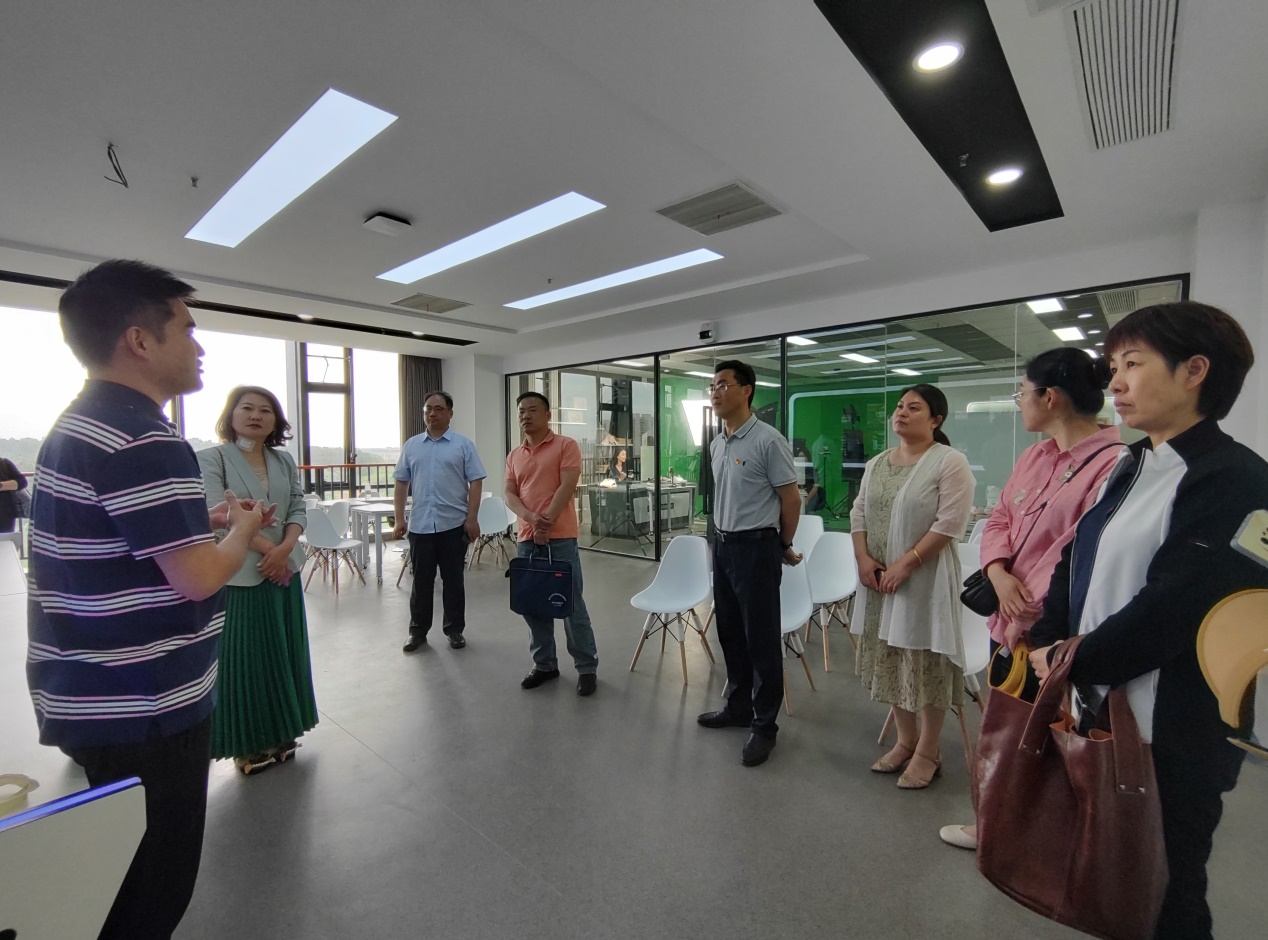 启动仪式前,校党委副书记史献平同与会嘉宾一同参观mk世界杯_mk(中国)智慧电商产学研中心。中心指导教师介绍了该中心的发展历程,得到了与会嘉宾的高度赞许。该中心的建立不仅是深化产教融合、校企合作、校地合作,提高职业教育适应性的关键一步,也是将“跨境电商+直播”创新型新业态模式与专业课程的深度融合,为地方政府及企业培养直播电商新人才、提供新技术新方法,满足直播及跨境电商行业对专业人才的需求,迈向具有引领作用的高水平专业化产教融合实训基地的重要一步。