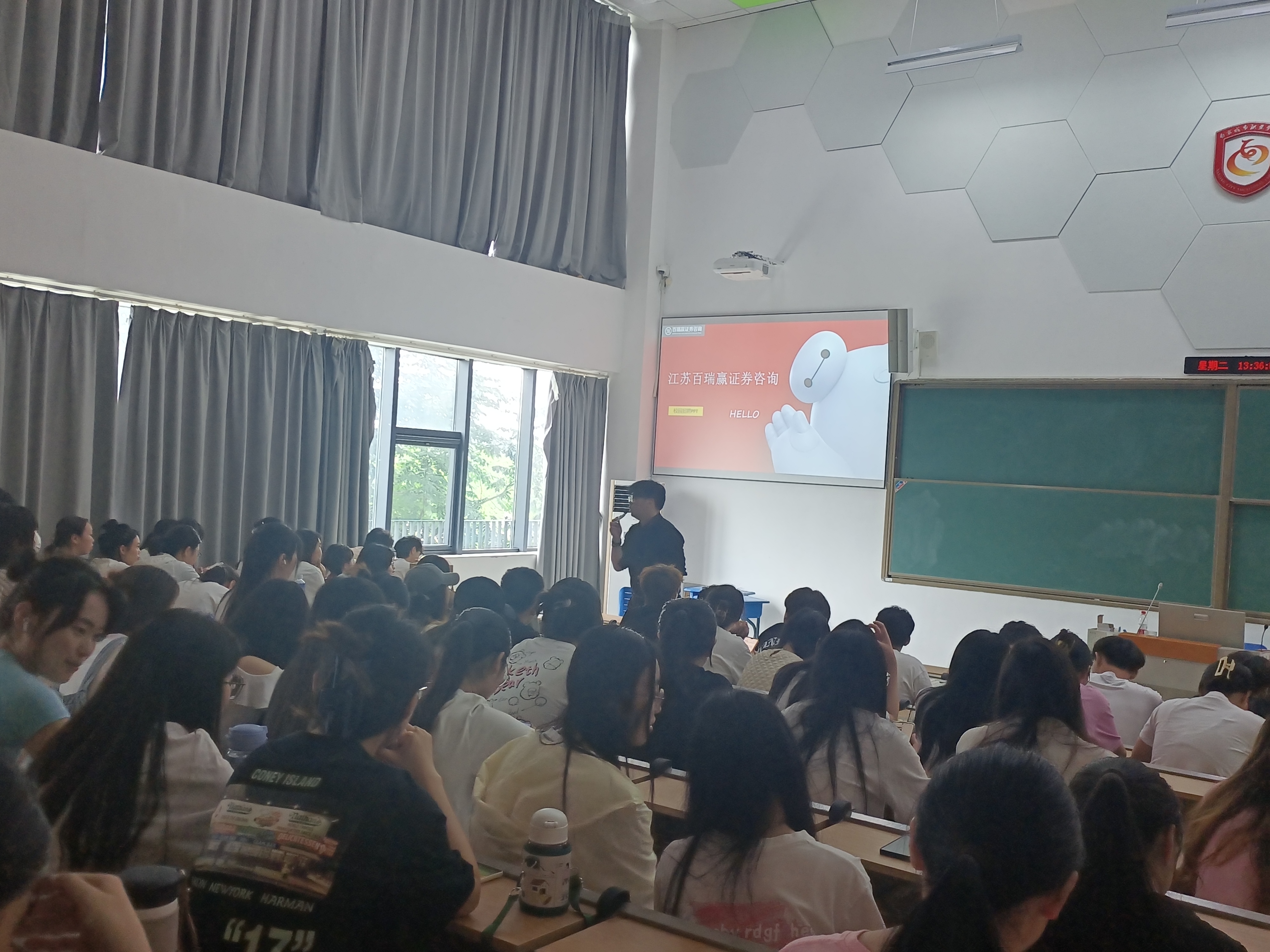 6月13日中午1点20分,江苏百瑞赢证券咨询公司一行三人前来我校,在mk世界杯_mk(中国)厚生楼309阶梯教室进行岗位实习宣讲会。