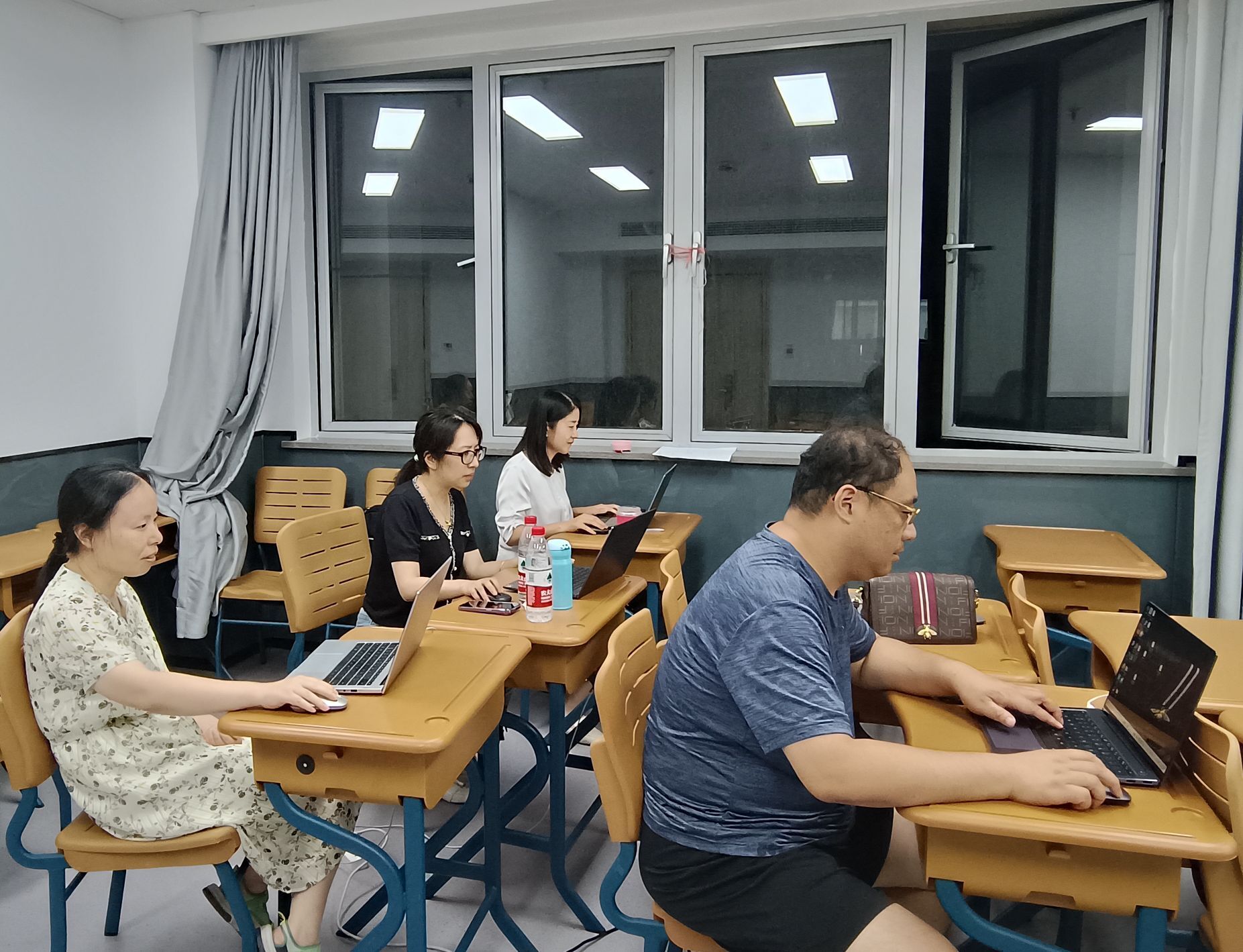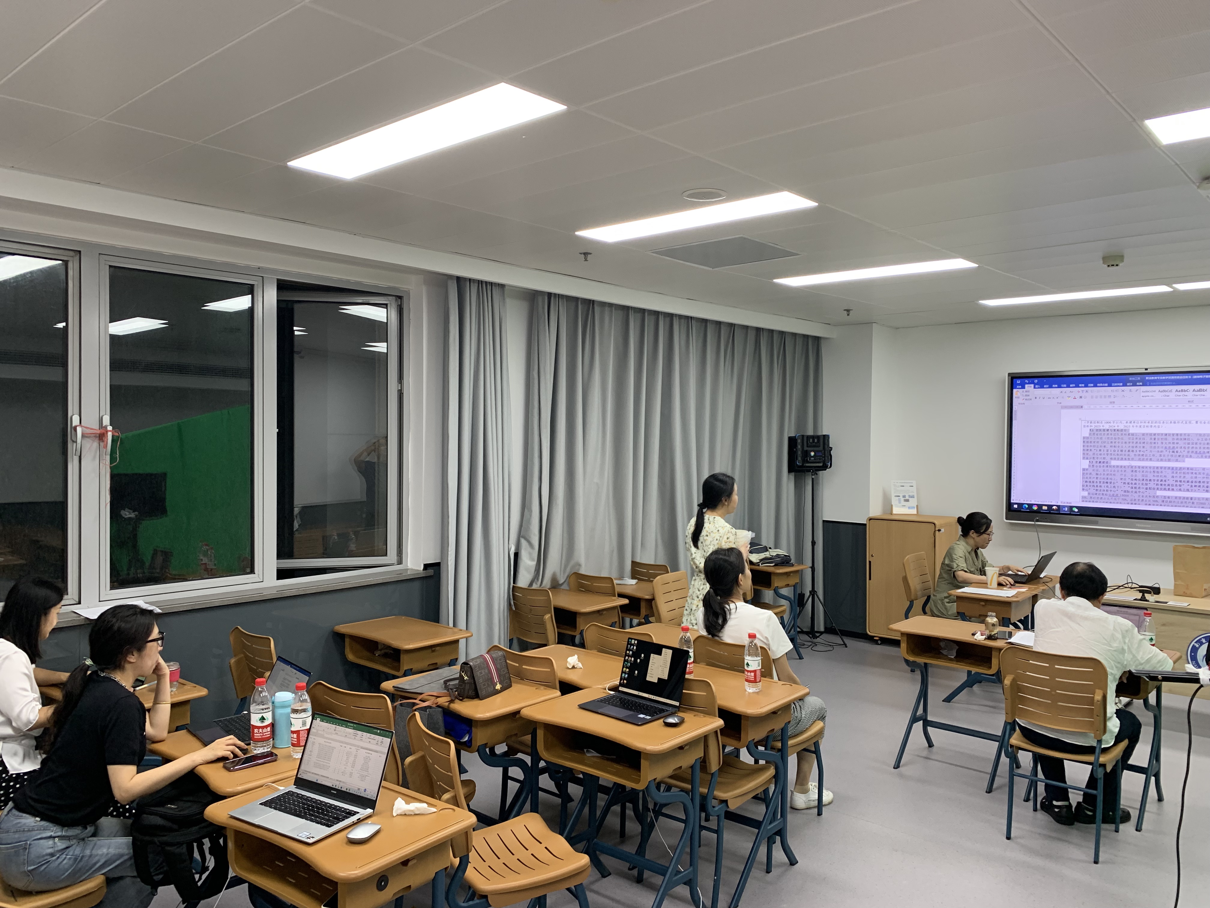 前期学院采取了团队研讨、校内研讨、校校研讨等多种形式,线上线下相结合,就资源规划、课程建设、音视频制作、资源推广等多方面展开深入、充分、多方位研讨交流。在基本确定资源库建设思路之后,团队教师为如期完成申报任务,分工协作开展工作:项目开发组专兼职教师冒着酷暑加班加点录制微课、上传平台;协调保障组老师时刻关注课程负责人群,随时为来自全国各地的老师们答疑解惑,收集各项资料;资料整理团队老师马不停蹄地收集整理佐证资料;任务书执笔团队在专家指导下逐字逐句打磨任务书,不放过任何一个细节;全体辅导员教师服从指挥,向新生、在校生高效传导资源库应用推广通知,短时间内迅速提升资源库用户及学习量。团队人员在新街口校区的临时工作场地经常忙得废寝忘食,工作至深夜。