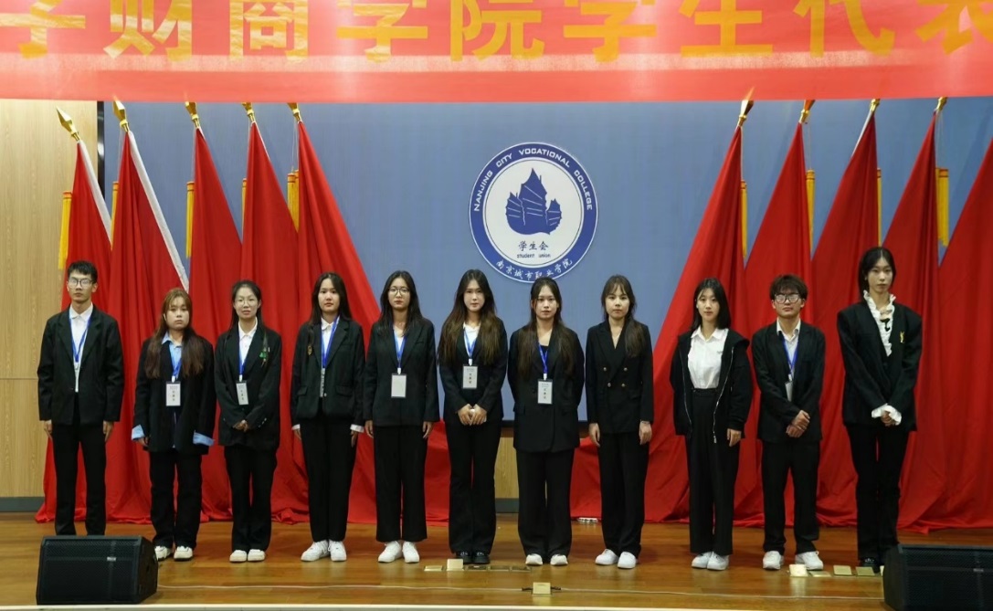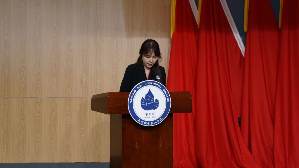 在等待最终选举结果中,大会来到第四项议程,由大一代表团团长张依凡、大二代表团团长计媛媛、大三代表团团长黄夏敏发言。发言中,各代表团团长充分阐述代表了本年级学生们的心声,也对学生会的工作表达了肯定,更是表达了我院学生们青春风貌。
