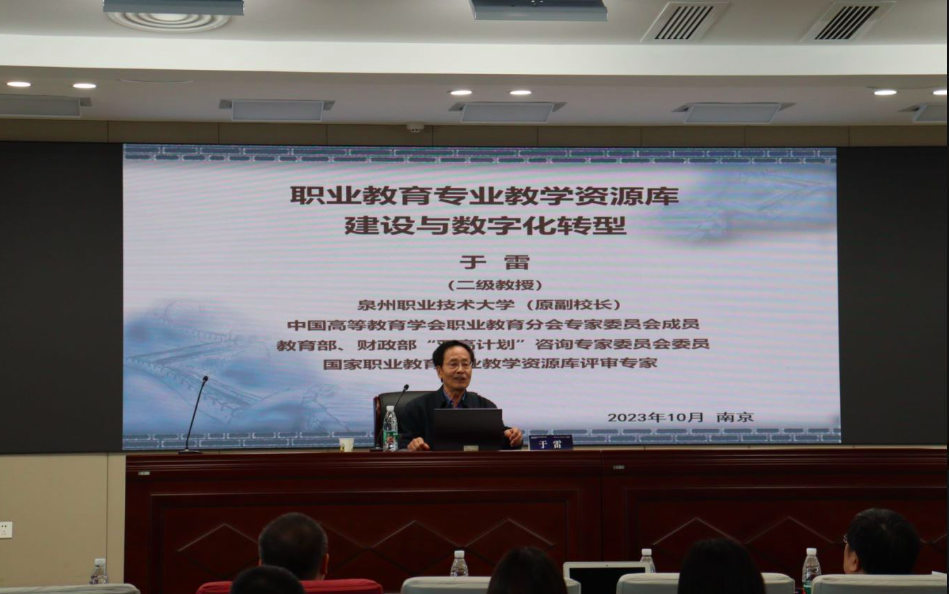 中国高等教育学会职业教育分会专家委员会、现代职业教育研究院专家委员会专家、二级教授于雷以“职业教育专业教学资源库建设与数字化转型”为主题,从资源库建设、应用、推广,数字化转型等方面展开横向和纵向相结合的全面论述和指导。