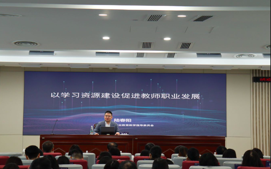 全国电子商务职业教育教学指导委员会常务副主任陆春阳做了“以学习资源建设促进教师职业发展”的主题报告。陆主任从教师职业发展关键节点、以课程为核心的成果体系构建、我们需要什么样的课程、课程的来源、课程的结构处理方法、课程开发者的素质、课程开发的细节问题等方面做了宏观和微观相结合的深刻阐述。