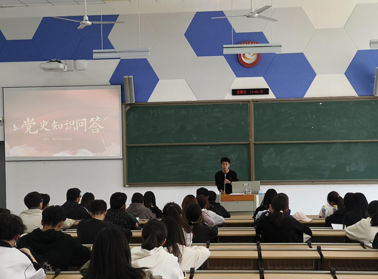 为加强党员发展的工作质量,保持党组织的先进性、纯洁性,引导广大团员青年加强对中国共产党的了解,确立新时代青年肩负的时代重任。2023年10月22日下午13:40在厚生楼101教室,mk世界杯_mk(中国)开展了以“我爱我党,我懂我党”红色知识问答党课专题活动。本次党课由团总支副书记常涵带领团员进行学习,团总支书记刘华辉老师现场指导此次活动。