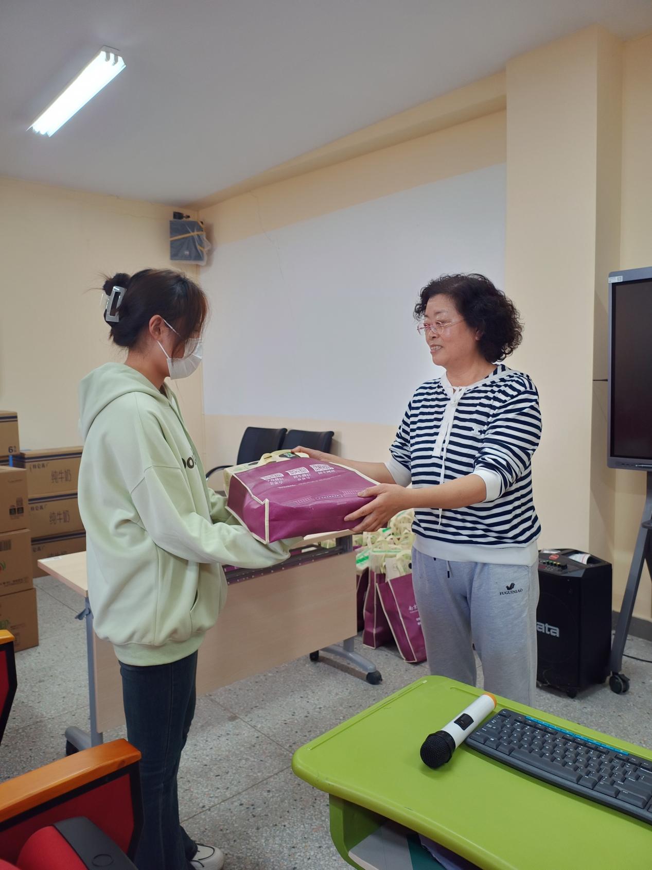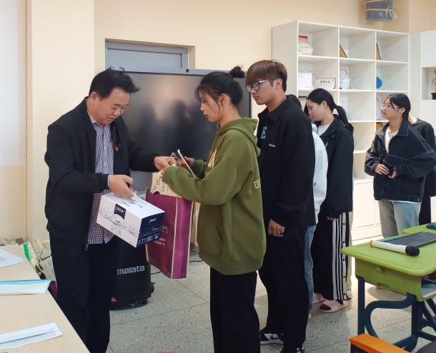 活动中,胡丽君首先阐明了这次活动的目的和意义,表达了对家庭经济困难学生的关怀。接着,童钧洪代表老同志们亲切询问了同学们的学习与生活状态,鼓励同学们要志存高远,自立自强,要勇敢面对生活的挑战和磨砺,勇于追求,不断拼搏。随后,两位老同志为同学们发放了慰问品,切实地将温暖与关怀送到每位同学的心坎。这些精心挑选的“温暖”大礼包,承载着我院关工委对学子们的浓浓爱意和深切希望,给予同学们的不仅仅是日常生活物质上的支持和帮助,更是对同学们精神上的慰藉和鼓励。
