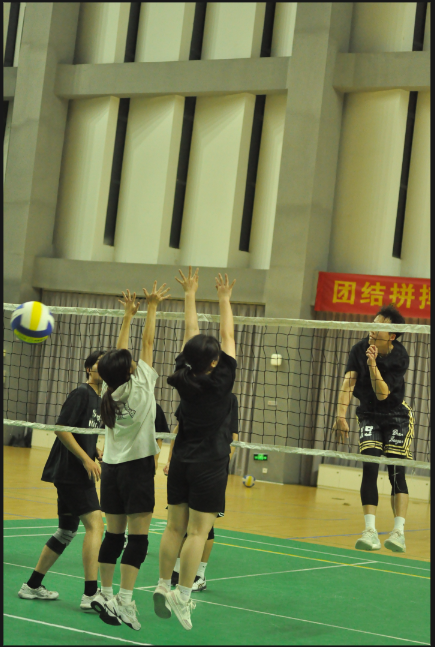 王长梅老师和赵壮壮老师亲临指导使队员们倍受鼓舞。此外,各院自发组成的啦啦队给予了队员们极大的精神支持和鼓励。队员们在赛场上挥洒汗水、奋力拼搏,每一个传球都凝聚着智慧与团结,每一次接球都尽显他们青春的活力。