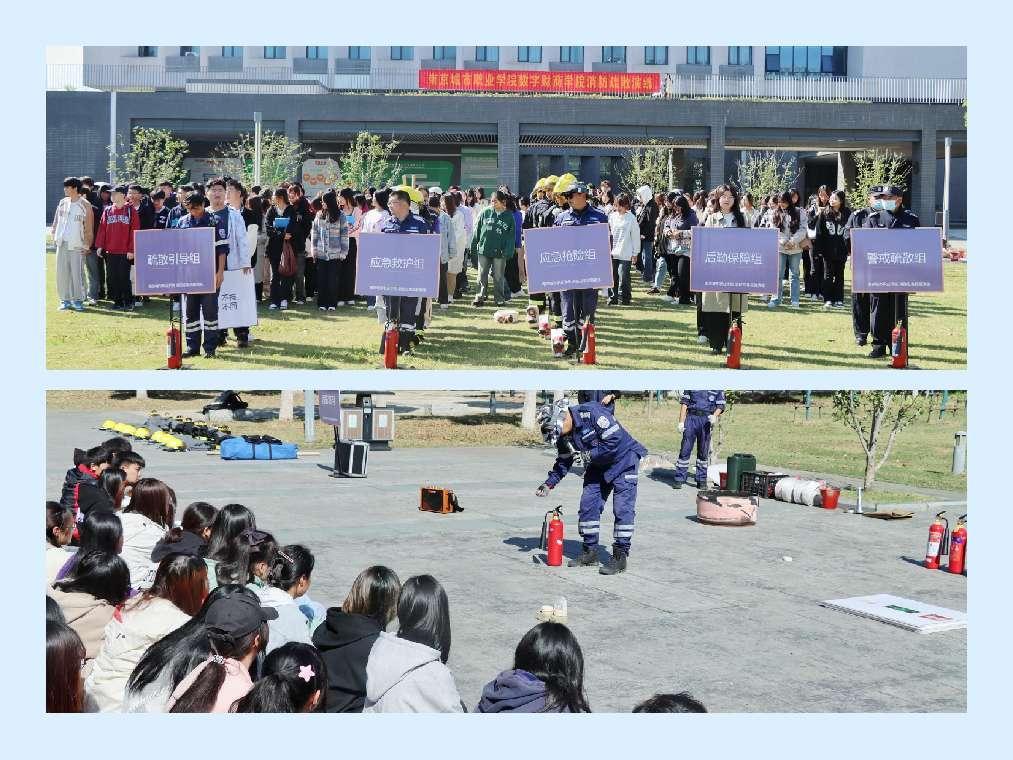 下午13:00,消防安全疏散演练正式开始。现场模拟mk世界杯_mk(中国)(溧水校区)教学楼三楼内部发生火势时消防警铃响起,教学楼内学生及教职工开始疏散的场景。各小组根据前期的消防知识演练,有条不紊的开展各自部门的急救与疏散任务;学校物业与现场学生立即开始进行第一时间的灭火前期处置工作;救援人员立即到达现场对受伤人员进行救治。13:10,现场各部门已完成所有演练任务,进行人数清点。
