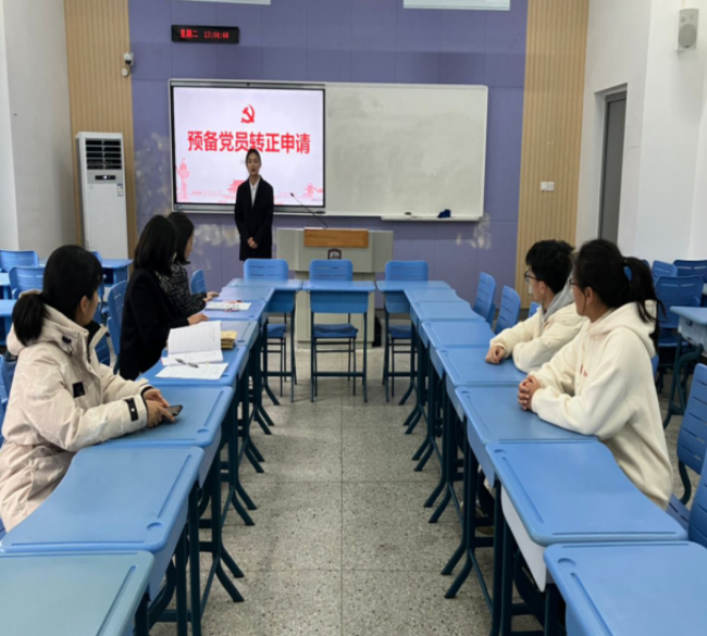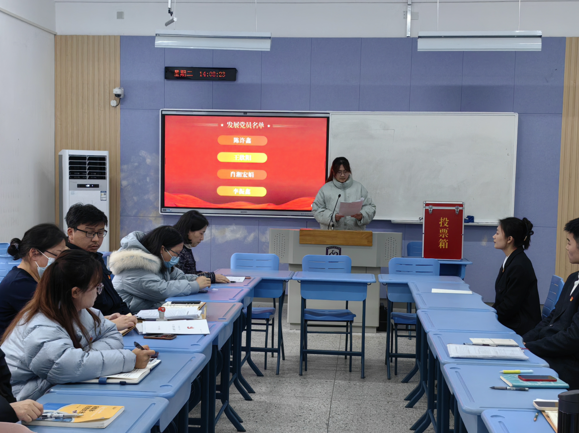会议第二项议程,党员发展对象陈许鑫、王欣阳、肖湘宏娟、李振鑫分别宣读了入党志愿书,结合自己成长和工作经历,表达了积极向党组织靠拢的决心和愿望,入党介绍人和现场党员教师对四位同志平时的表现给予了充分肯定。经大会无记名投票表决,一致同意接收四位同志为中共预备党员,并报上级党组织审批。