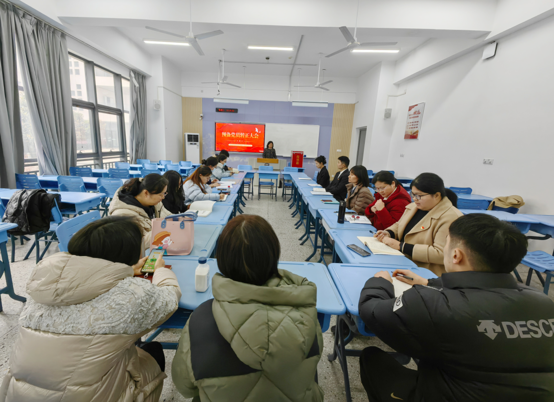 正式会议开始前,召开了两位预备党员徐琪琪、江龙宇的转正答辩会,由支部书记滕静涛主持。参加转正答辩会还有入党介绍人、党员代表、学生代表,转正答辩会分为个人陈述、现场问答、现场评议三个环节。预备党员转正会议开始后,两名预备党员依次宣读了自己的转正申请书,详细汇报了自己在预备期的表现,表达了自己入党的决心,认真总结了自己在预备期在学习、工作中的提升与不足。两位同志的入党介绍人分别介绍了对他们的培养过程和主要情况,表明同意转正的意见。参会党员通过无记名投票方式,一致通过两位同志的转正申请,并报上级党组织审批。