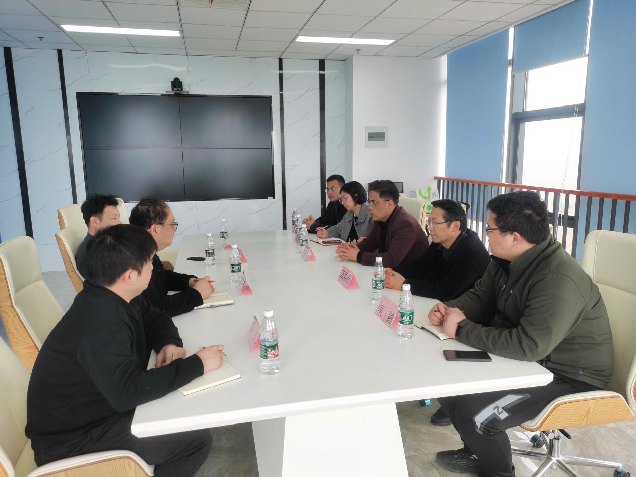 随后,双方在科创楼六楼会议室进行交流洽谈。首先,由丁亮代表学校对南京消防器材股份有限公司副总张达平一行的来访表示热烈欢迎。丁亮副院长简要介绍了我院发展历史、办学特色、专业设置、学生就业等情况;重点介绍了跨境电商、直播基地的成立与后续发展方向,强调学院继续提升教学管理水平,守正创新谋求学院品质发展,职业学校在育人过程中不仅要抓好基础教育更要让学生强化实践动手能力,希望双方在共同建设、共同培养、共同发展中进一步加强合作。