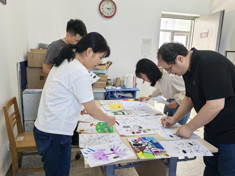 本次活动精心准备了100份独特的素材——印有大小形态各异的黑点图案的白色纸张。参与活动的同学们将随机抽取一张纸张,以这些黑点为基础,运用无限的想象与创造力,将原本带有“瑕疵”的白纸,转变为一件件充满美感与特色的艺术作品。他们或以黑点为轮廓,创作出一只蝴蝶或一株花朵;或以黑点为五官,创作的表情包和小动物生动有趣;或以黑点为墨迹,勾勒出富有意蕴的画卷。在他们的巧手之下,原本平凡无奇的白纸焕发出独特的光彩。本次活动共计评选出20份优秀作品进行展示。