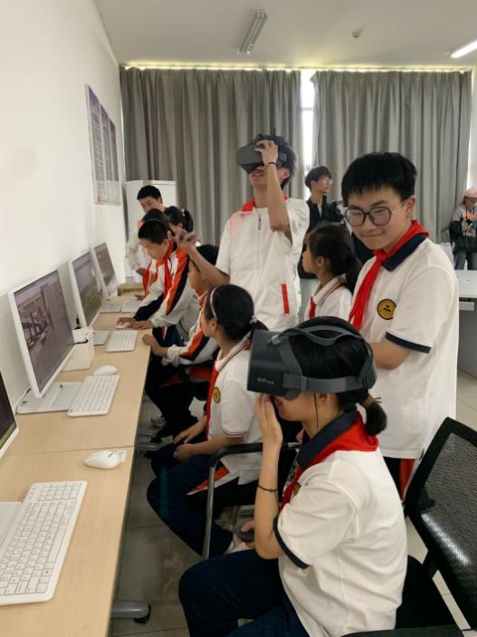 在数字货币博览馆参观区,同学们在志愿者的指导下通过电脑或VR设备观看古今中外各类精美的货币展品,走进多彩的货币世界。