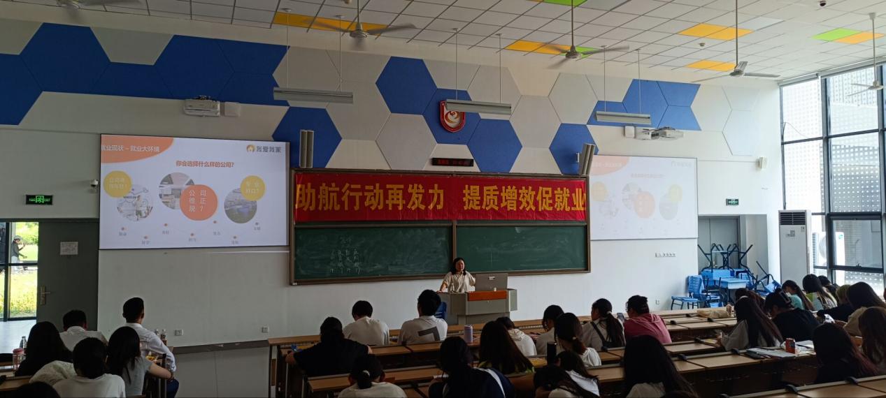 随后,朱女士深入讲述了公司的人才培养方案和职业发展路径,强调了公司对年轻人才的重视,这激发了学生们对未来职业生涯的无限遐想。通过展示成功案例,朱女士向学生们说明了在“我爱我家”成长与成功的可能,这不仅加深了学生们对行业的认识,也鼓舞了他们投身此行业的热情。