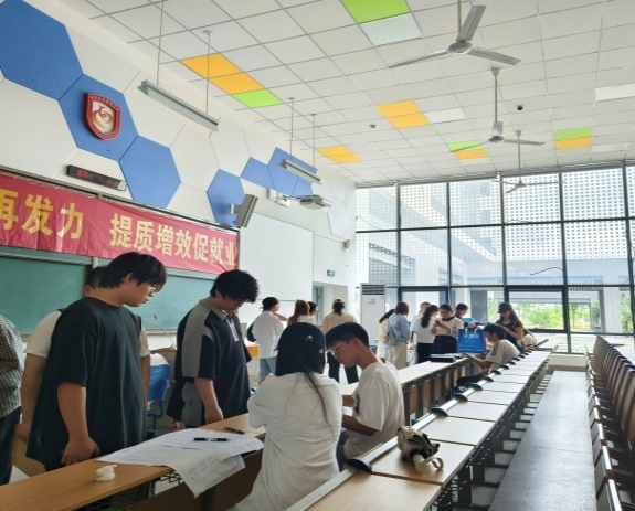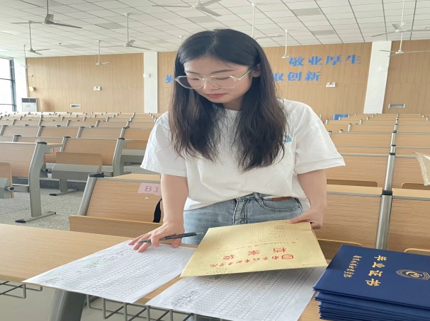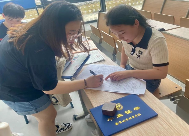 中午11点30,在厚生楼101、309、敬业楼101教室按照分组,志愿者进行毕业材料发放等工作。活动现场志愿者不畏天气湿热,分工明确、团结协作。他们有的负责搬运重物,有的负责整理物品,有的负责现场协调,有同学提出了将各类材料按专业分类并标注明显指示牌的建议,赢得了在场师生的一致好评。在大家的共同努力下,整个活动进行得有条不紊,秩序井然。毕业生们纷纷表示,感谢志愿者们的帮助,让他们能够更加便捷地、准确地领取到自己的个人材料。