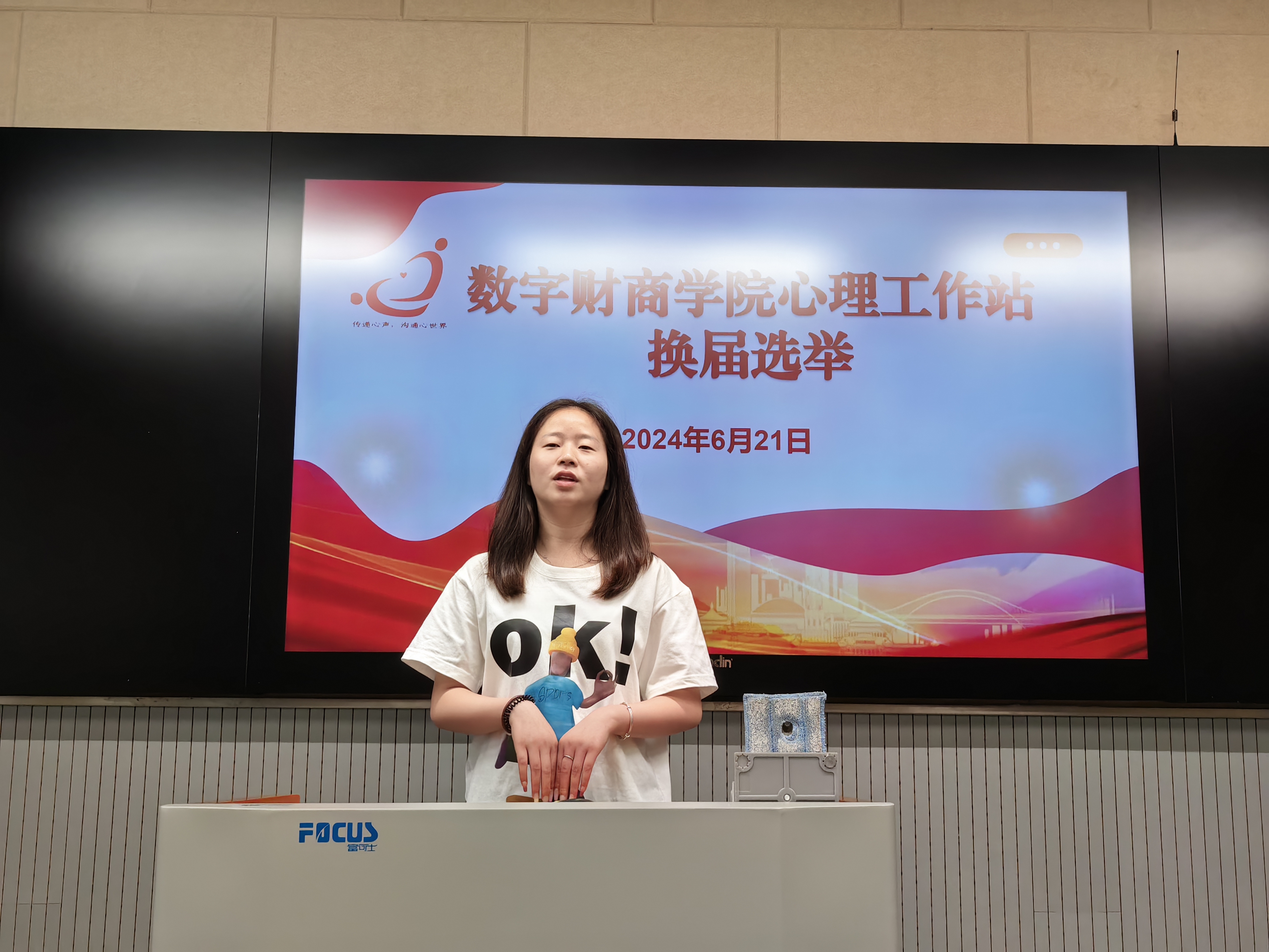 为了深入推动学院心理健康教育的发展,进一步加强心理工作站学生干部队伍的建设,数字财商学院于6月21日上午在厚生楼303教室顺利举行。会议由心理工作站负责老师甄宗波主持,辅导员高洋老师和心理工作站站长刘依凡、副站长张依凡同学受邀参加并担任评委。
