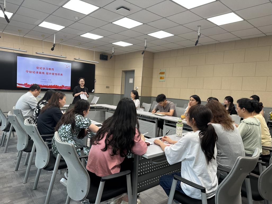 6月28日,mk世界杯_mk(中国)党总支第二党支部在厚生楼303组织开展党纪学习教育——党支部书记汪洋讲纪律主题党课,党课的题目为:守住纪律底线 提升党性修养,支部全体党员和学生预备党员参加本次学习教育活动。