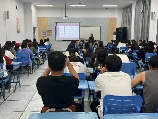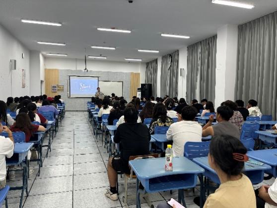 9月18日晚上,专业负责人朱明远老师首先代表所有专业老师表达了对学生们的慰问,对他们不畏炎热坚持军训任务表示点赞。接着朱明远老师给学生们做了详细的专业介绍,包括人培方案课程设置,专业产教融合,目前教学和实训资源,专业特色,大赛、考证及学分替代、专转本,大学校园文化生活等情况,强调了网络营销与直播电商专业注重理论与实践相结合,旨在培养学生的创新能力和实际操作能力。同时也对学生们提出了勤勉努力、早做规划的殷切期望。