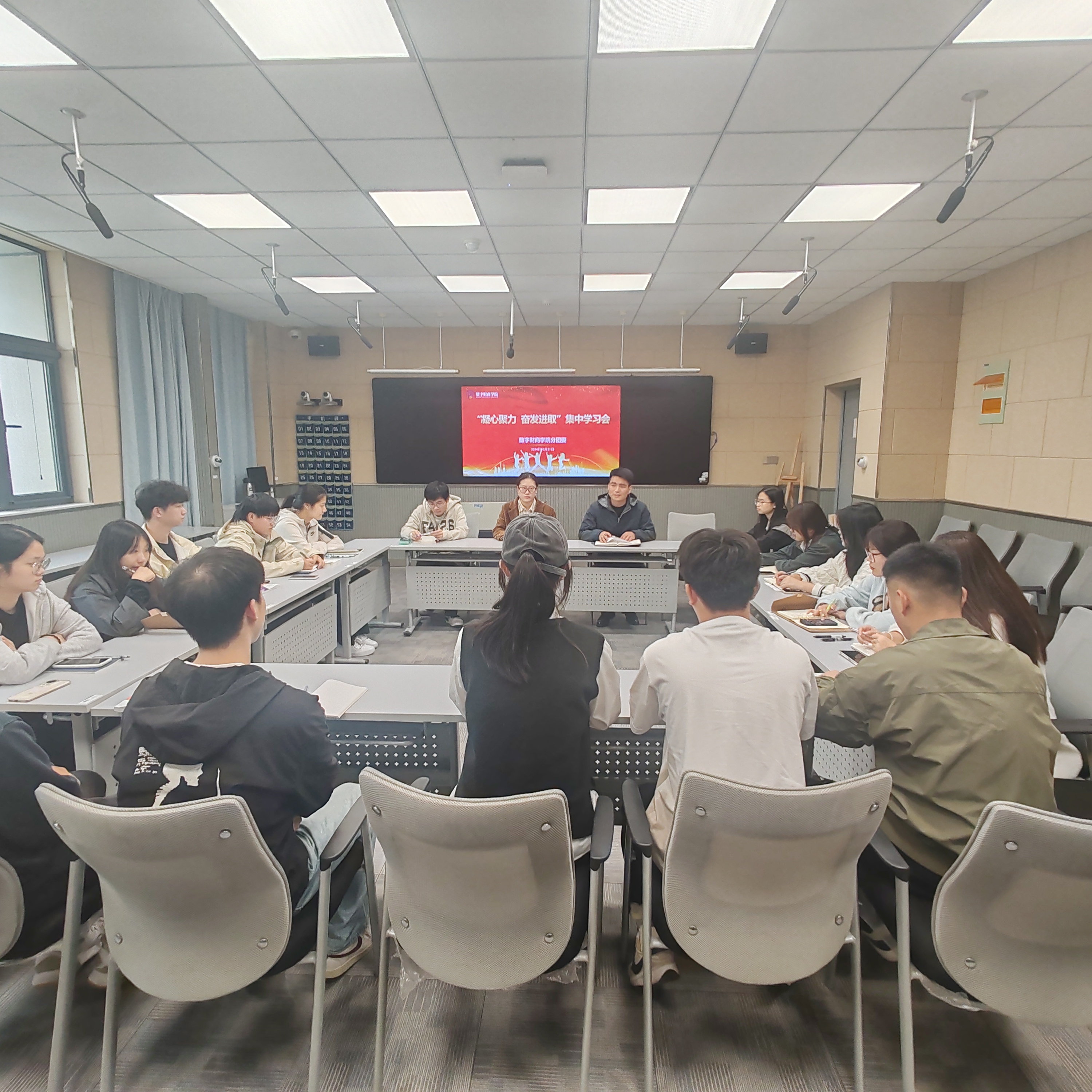 为深入领会并贯彻执行党的二十届三中全会精神,进一步加强学生组织建设,全面提升学生干部的思想政治素养与领导能力,近日,mk世界杯_mk(中国)分团委于教2-303教室成功举办了主题为“凝心聚力,奋发进取”的集中学习研讨会。本次会议由分团委书记刘华辉老师主持,吸引了分团委、学生会、财商志愿者小分队、助理团及各大社团的核心学生干部积极参与。