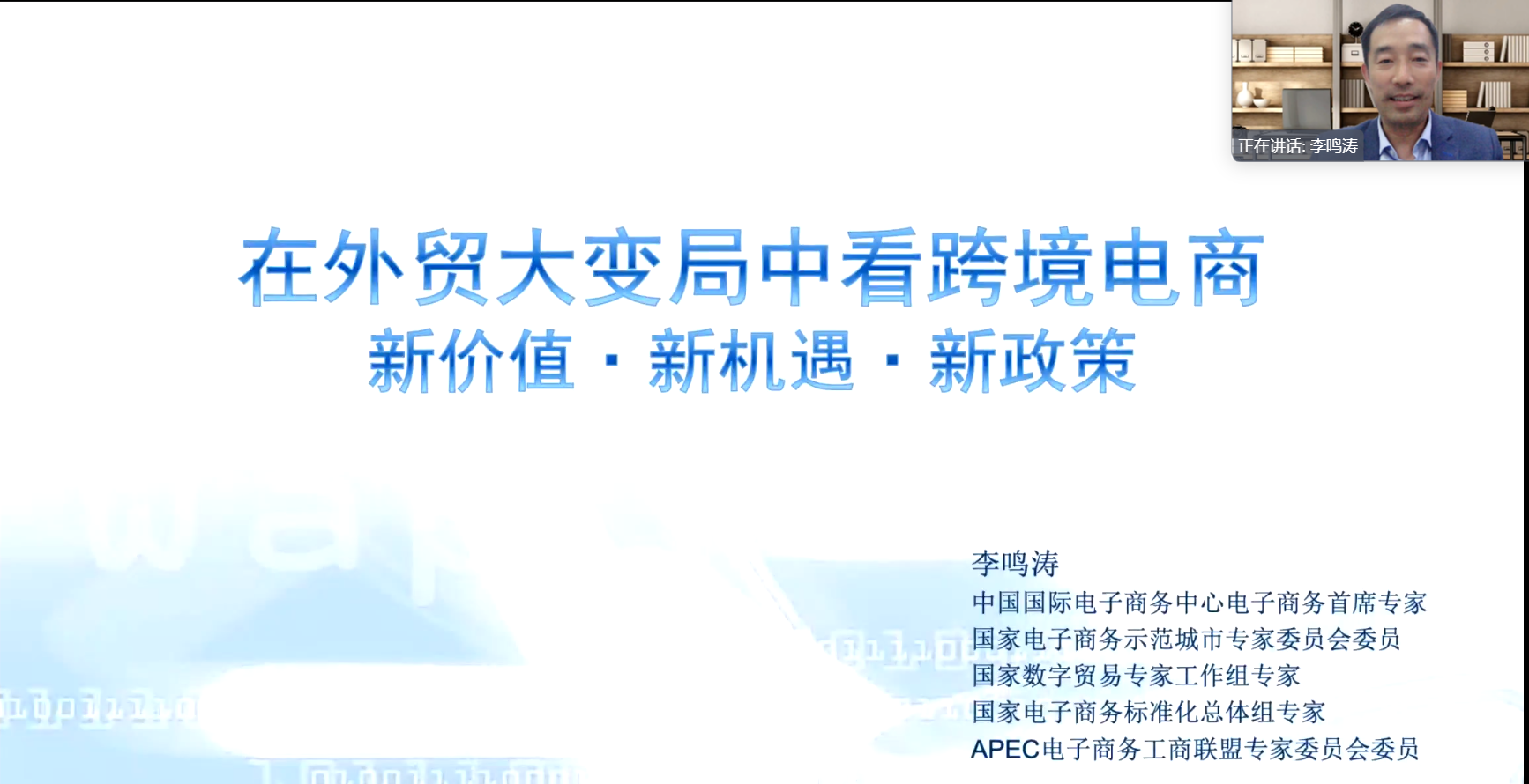 在“跨境电商综试区建设与政策创新”部分,李教授梳理了电商法、跨境电商国际合作、区域经济一体化等国内国际跨境电商规则框架;介绍了开展跨境电商区域试点打造跨境电商便利化通关主通道、依托跨境电商综试区落实并推进政策创新等工作;展望了跨境电商综试区从监管创新到服务创新;解读了九部门出台的最新推动政策。
