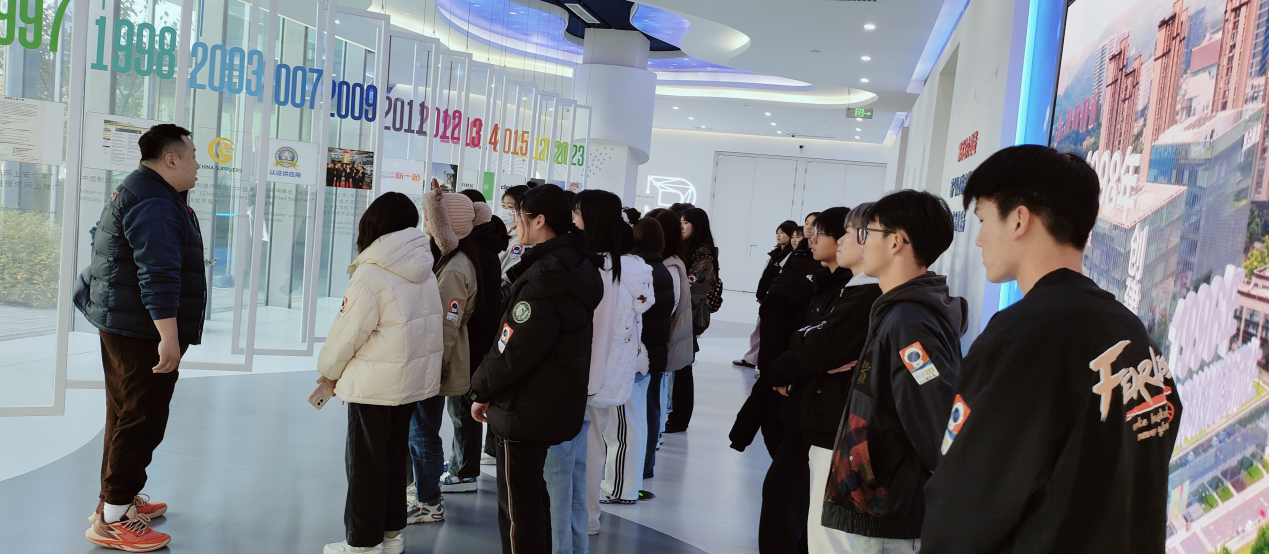 通过参观焦点科技的企业展厅,同学们深入了解到该公司从创新型互联网信息服务提供商到国内领先的B2B电子商务平台运营商的发展历程,包括早期面临的挑战、关键战略抉择以及里程碑式的业务突破。参观结束后,同学们在会议室观看并学习了公司的线上课程。企业导师杨经理安排了答疑环节,为同学们进行现场解惑。