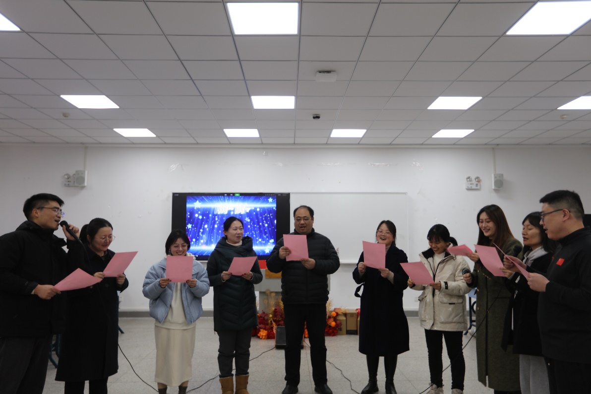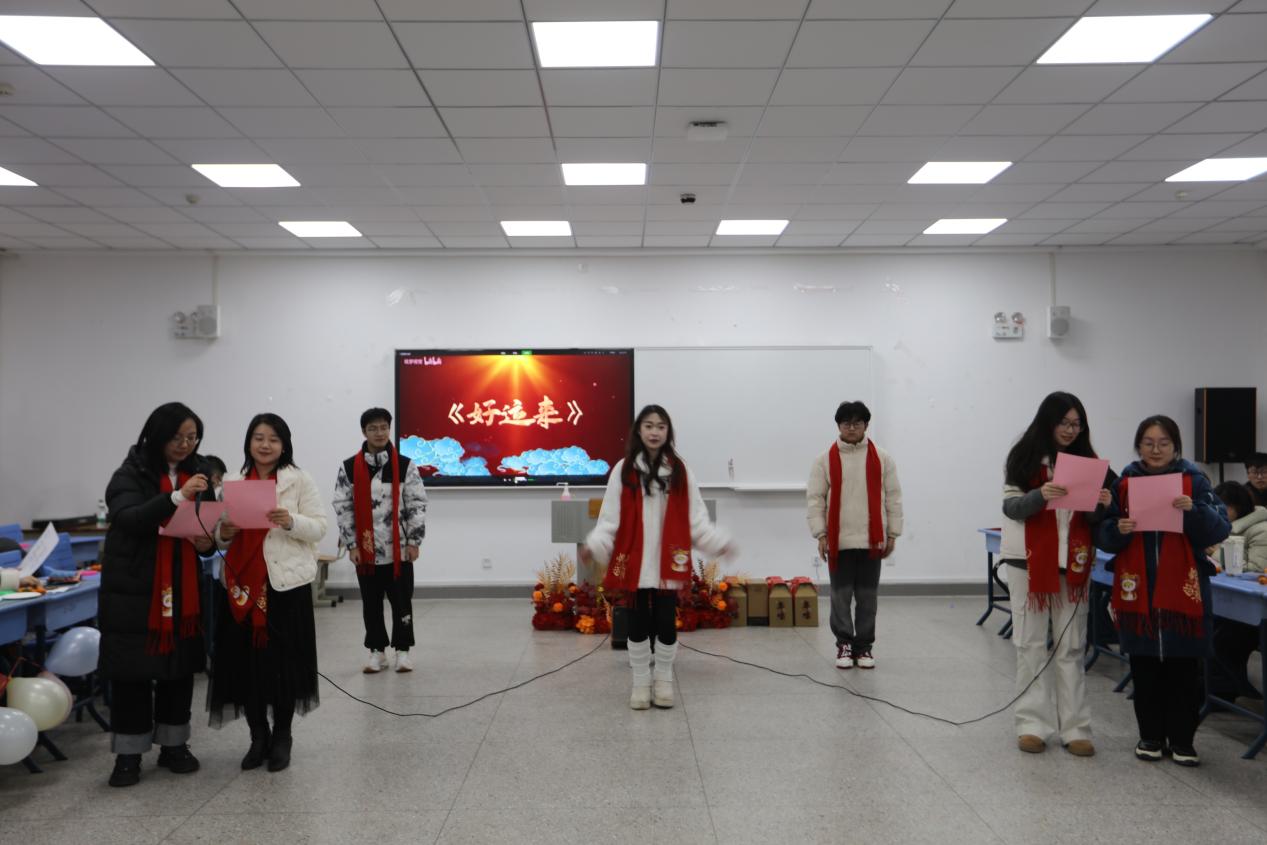 互动游戏环节笑声不断,师生踊跃参与,现场气氛热烈非凡,有效增进彼此情谊。商贸物流教研室的歌曲串烧活力四射,多首歌曲联唱展现教师别样风采;新入职教师的趣味配音创意十足,模仿惟妙惟肖,为活动增添趣味与新奇。邵予晴的歌曲《说爱你》甜美动听,传递温暖爱意。金融专业教师深情朗诵《再别康桥》,以醇厚嗓音勾勒诗意画卷。会计专业教师的合唱《教师阵线联盟》幽默诙谐,展现团结协作精神。辅导员的朗诵《辅导员的奇幻新年专列》,以独特视角讲述校园趣事与成长感悟。行政人员再次登台,合唱《这世界那么多人》,用歌声诉说校园故事,传递珍惜当下、携手前行的美好愿景,为活动画上圆满句号。