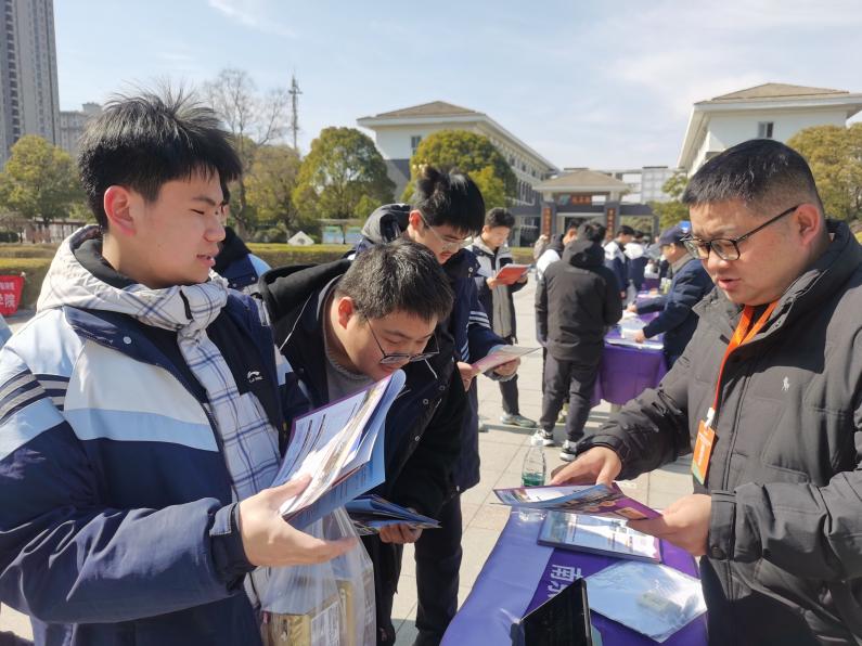 随后,刘华辉老师与赵磊老师前往徐州邳州,走访邳州市炮车中学、官湖高级中学、第四中学、第二中学、八义集高级中学、宿羊山高级中学、艾山高级中学等多所学校,重点介绍学校复合型人才培养模式,并就学生关心的专业选择、升学路径等问题进行解答。