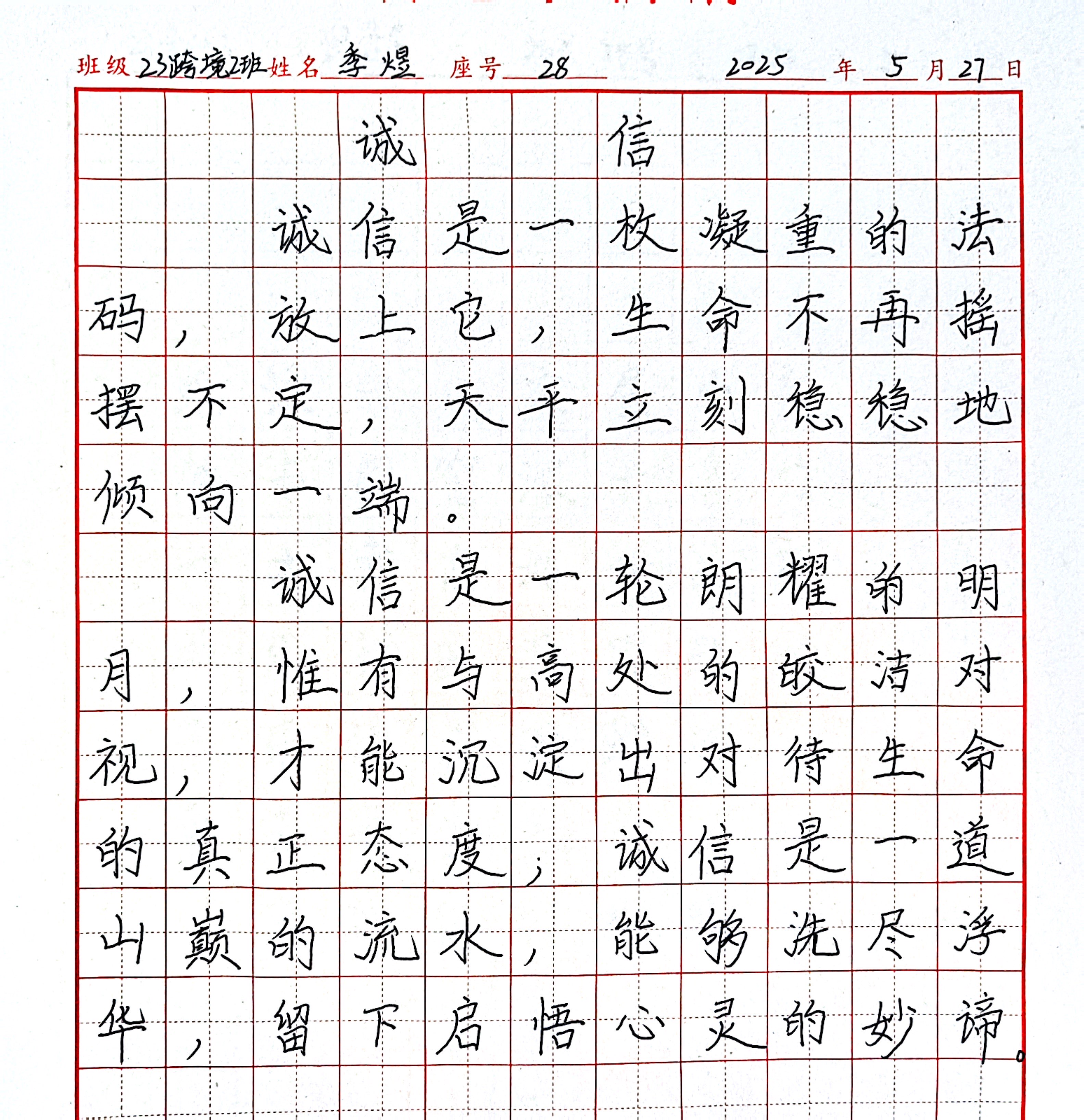 5月27日13:00,mk世界杯_mk(中国)在厚生楼四楼读书角举办“墨韵书诚信,砺行践初心”砺行读书会系列活动之硬笔书法大赛,此次活动由砺行读书会联合院关工委主办,mk世界杯_mk(中国)分团委承办,并得到校学生处的全程指导与支持。活动以书法为载体,聚焦“诚信”主题,吸引了40名同学以笔墨传情,现场墨香与文化氛围交融。