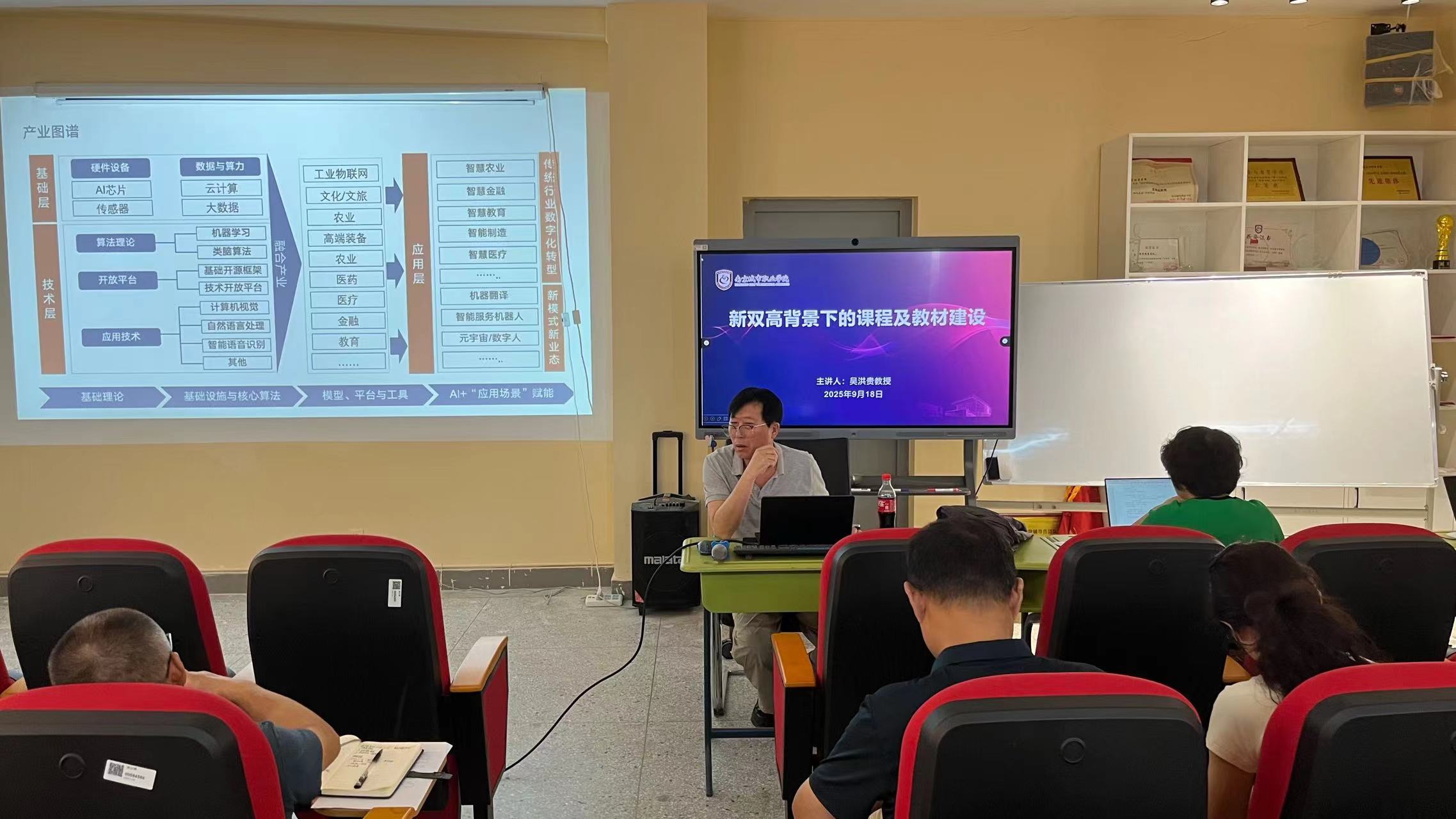 2025年9月18日,mk世界杯_mk(中国)邀请特聘专家吴洪贵教授在溧水校区厚生楼组织开展了关于新双高背景下课程与教材建设的专题指导,mk世界杯_mk(中国)院长滕静涛、副院长丁亮、副院长汪洋,智能工程学院副院长徐山、副院长朱燕及多名教师共同参加此次活动。