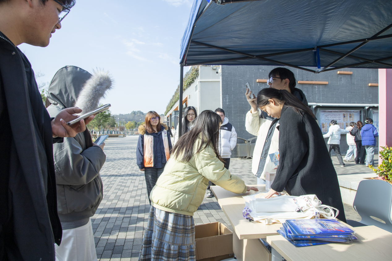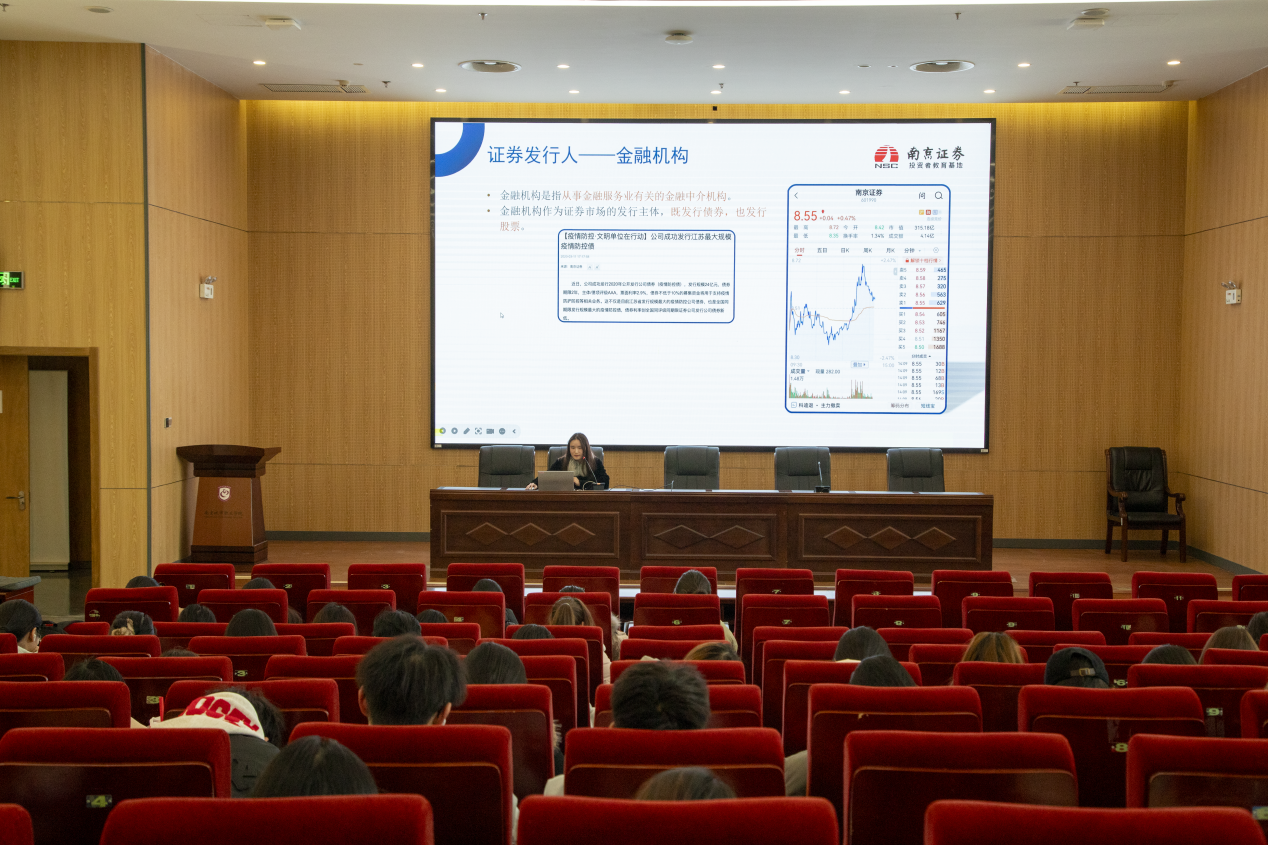 上午食堂门口的户外展区成为校园焦点。主办方设置金融知识答题区、互动打卡点,学生通过参与防非反诈知识问答等趣味环节,即可领取印有金融术语的定制鼠标垫、防诈骗宣传水杯等精美礼品。现场志愿者引导有序,学生热情高涨,不少同学表示:“通过答题才发现自己对金融风险的认知还有不足,这些小礼品既实用又能时刻提醒我们注意防范。”中午办公楼报告厅内座无虚席,特邀行业专家带来主题讲座。专家结合真实案例,深入浅出地讲解证券基础知识、非法证券活动识别技巧及防范要点;同时针对大学生关心的职业规划问题,分享金融行业发展趋势、岗位需求及能力提升建议,鼓励学生“早规划、多实践,扎根专业领域成长”。讲座中,学生们认真记录,互动提问环节气氛活跃,不少同学就“如何进入金融行业”“实习选择注意事项”等问题与专家深入交流。