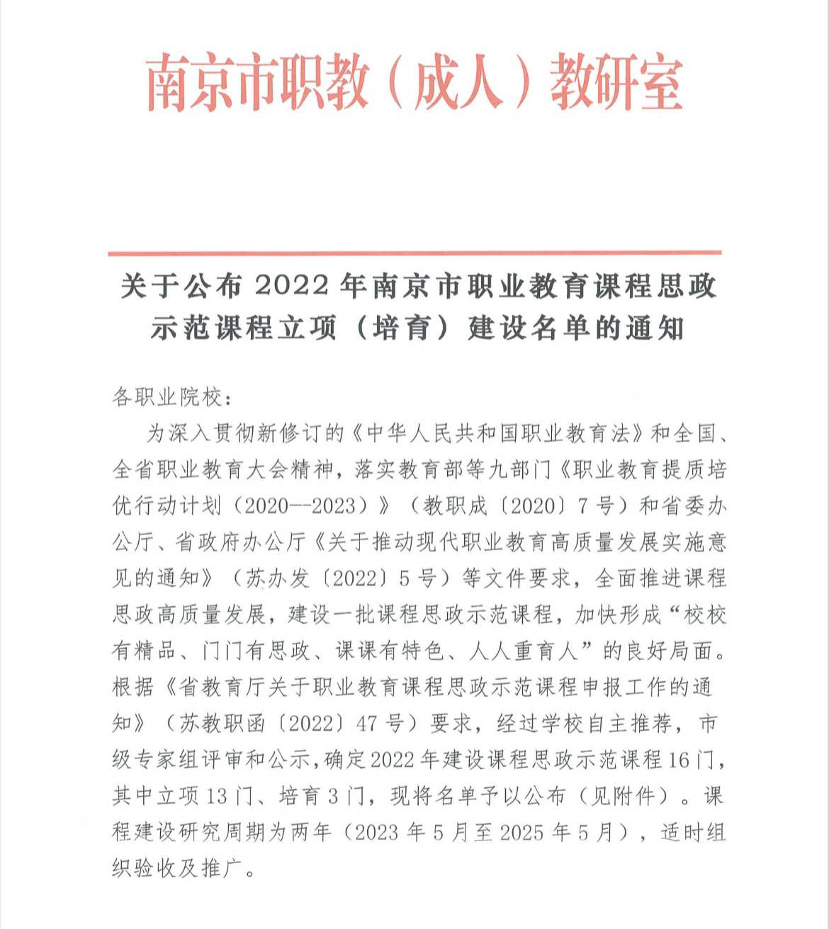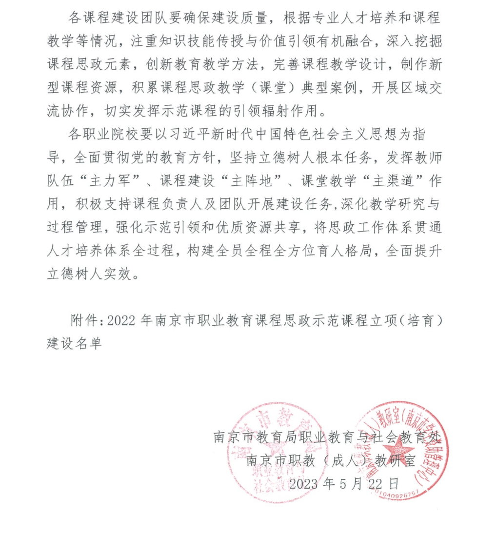 近日,南京市发布《关于公布2022年南京市职业教育课程思政示范项目立项(培育)建设名单的通知》,我校“经济学基础与应用”课程获批2022年南京市职业教育课程思政示范课程建设项目。