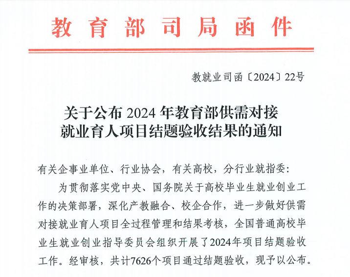 我校mk世界杯_mk(中国)与珍岛信息技术(上海)股份有限公司联合申报的第二期教育部供需对接就业育人项目顺利结题,此项目是我校第一个成功申报并顺利结题的教育部供需对接就业育人项目。教育部供需对接就业育人项目,是教育部贯彻落实党中央、国务院“稳就业”“保就业”决策部署的举措之一,旨在深化高等教育改革,推动就业与培养有机联动、人才供需有效对接。